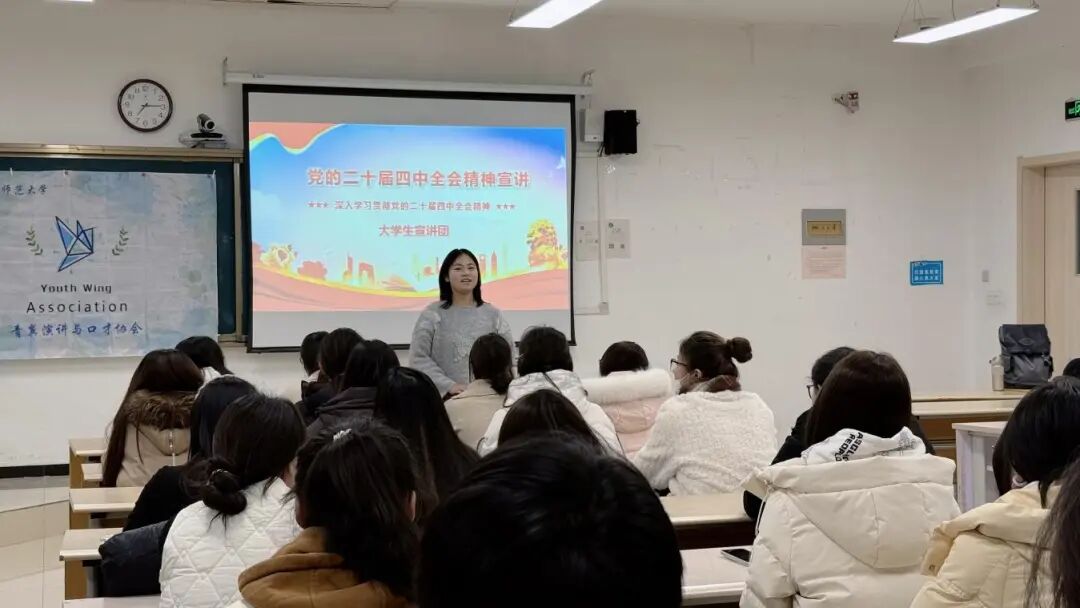 为深入学习贯彻党的二十届四中全会精神,推动全会精神在校园内落地生根、入脑入心,我校大学生宣讲团于12月1日走进青翼演讲与口才社团开展了党的二十届四中全会精神主题宣讲活动。