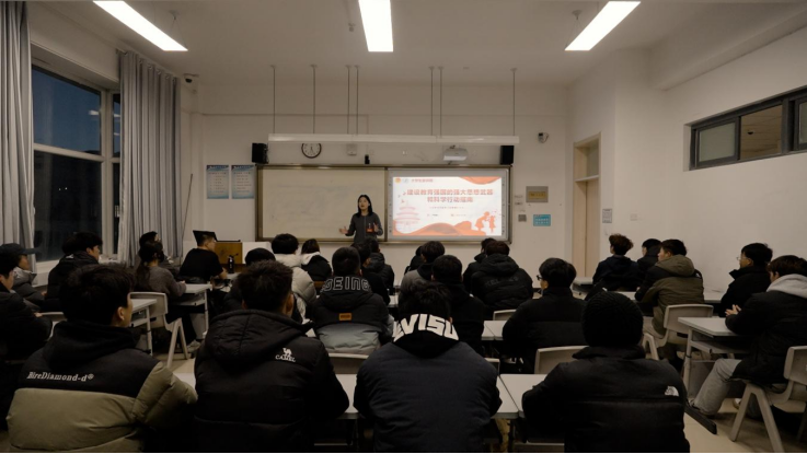 宣讲过程中,大学生宣讲团负责人围绕全会精神核心要义展开系统讲解。从“十四五”时期我国发展取得的重大成就切入,生动解读“十五五”时期经济社会发展的指导思想与战略任务;聚焦“加快高水平科技自立自强”“支持青年科技人才创新创业”等关键部署,说明青年学子锤炼专业本领、培养创新思维的时代意义;围绕“统筹教育强国、科技强国、人才强国建设”要求,鼓励同学们将个人理想融入国家发展大局,在学业钻研中夯实基础,在实践锻炼中增长才干。宣讲中还穿插校园实践案例、互动问答等环节,用身边人身边事诠释“把青春奋斗融入党和人民事业”的深刻内涵,让理论宣讲更具温度与感染力。