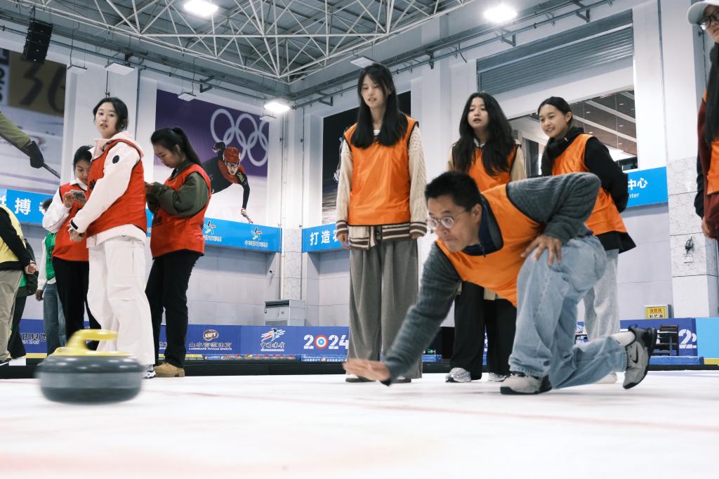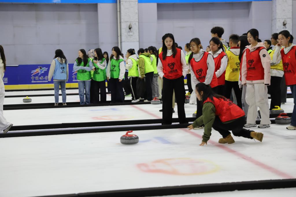 队伍组建后,现场开展了系列热身小游戏,让队员们在轻松愉快的氛围中打破隔阂、熟悉彼此,快速培养出初步的协作默契,为后续竞技活动奠定了良好基础。热身环节结束后,8支队伍整齐列队前往冰壶馆,正式开启冰壶比赛。赛场上,学员们在教练指导下熟悉规则,团队内分工明确、相互配合、精准布局,场馆内不时响起阵阵加油与喝彩声,在瞄准、投掷的过程中,既展现了冷静思考的策略性,也体现了团队协作的重要性。