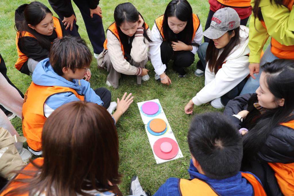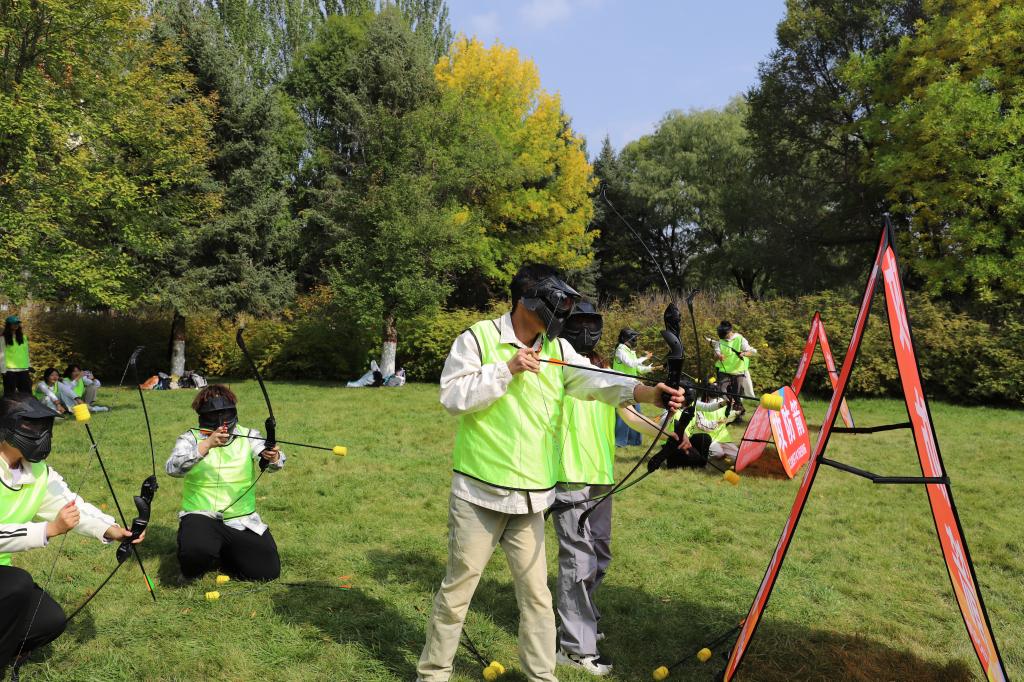 午后,活动氛围持续升温,攻防箭、趣味飞盘、汉诺塔等项目依次开展。攻防箭场地内,各队伍穿戴护具展开“攻防对决”,战术布局与成员间的信任配合成为获胜关键,现场呐喊声此起彼伏;“趣味飞盘项目里,学员们奔跑传接,在运动中释放活力,尽显青年朝气;汉诺塔则聚焦脑力比拼,强调逻辑思维与信息传递效率,队员们在紧张的计时压力下,通过高效沟通与策略调整,共同破解密码谜题,进一步强化了团队的协作意识与问题解决能力。