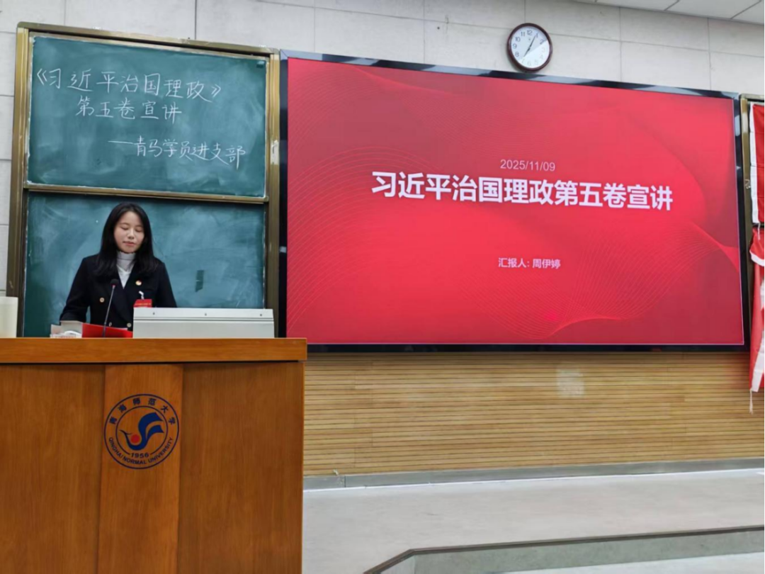 为推动习近平新时代中国特色社会主义思想入脑入心、落地生根,引导青年学子筑牢思想根基、勇担时代使命。11月9日,校“青马工程”第九组学员走进文学院团支部,开展以“深学细悟党的创新理论,青春践行强国使命”为主题的专题宣讲活动。本次宣讲紧扣《习近平谈治国理政》第五卷核心要义,与现场200名青年学子共同感悟党的创新理论蕴含的真理力量与实践伟力。