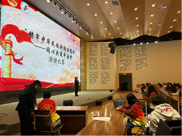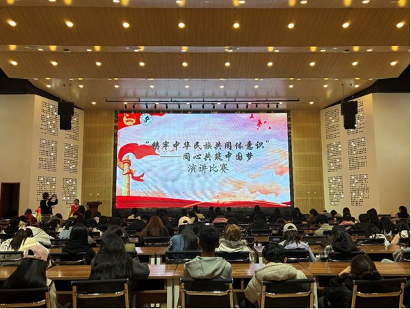 10月10日下午,校团委在图书馆报告厅成功举办主题为“铸牢中华民族共同体意识--同心共筑中国梦”的演讲比赛。本次比赛自启动以来,吸引了全校各个学院的100余名选手报名参赛,经过学院初赛、校级复赛的层层选拔,最终20名选手晋级决赛。青海大学石浩老师,校团委陈生娟老师,法学与社会学学院许楠老师担任评委,近200余名学生现场观赛。