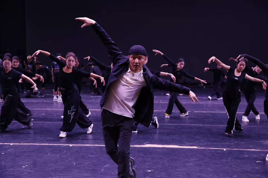 随后的“舞蹈叙事技巧”分享课上,巴特尔以自己编排的《黄河远上》《胡杨赞》两部代表作为例,拆解舞蹈承载故事与文化的方法。他解析《黄河远上》如何通过“浪涛式”、激昂的肢体语言,还原黄河壮阔景象并传递华夏文明底蕴;讲解《胡杨赞》怎样用刚柔并济的舞姿、西北民族元素,歌颂生命韧性与家国情怀。他还提炼出“用具象动作映射故事场景”“借民族符号强化文化共鸣”等编排技巧,让学生清晰理解“每一个转身、每一次托举都需服务于故事表达”。