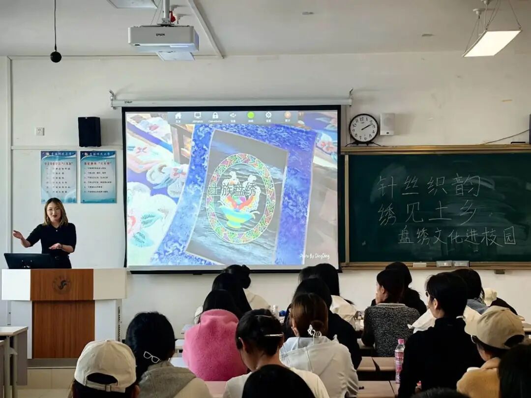 讲座最具感染力的环节,当属沉浸式互动体验,课堂瞬间变身迷你“非遗工坊”,同学们纷纷放下观望心态,从“旁观者”转变为“参与者”,亲手触碰柔软丝线,开启属于自己的盘绣初体验。
